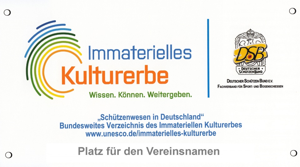 Seit Dezember 2015 haben unter anderem Volkstanz, die manuelle Glasfertigung und das Choralsingen etwas mit dem deutschen Schützenwesen gemeinsam – sie alle hat die deutsche UNESCO-Kommission als immaterielles Kulturerbe ausgezeichnet. Wer das als Verein zeigen möchte, kann mit einem entsprechenden Schild darauf hinweisen.